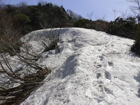 残雪があるところに来るとヤブから解放され「暫しほっと」した。