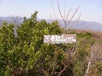 悪戦の末、頂上直下にやって来た。最後の急登を登りきると低い潅木に囲まれた細長い頂稜に達した。南西方向にわずかに戻って蕎麦粒山山頂(1296m)に出た。