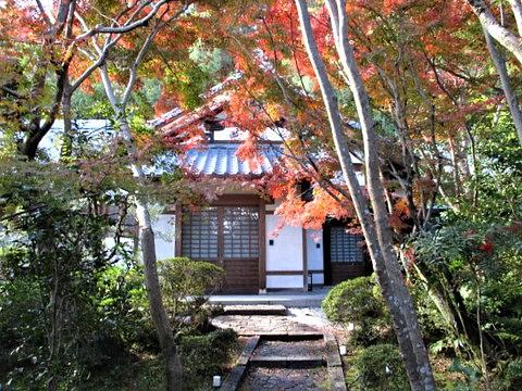 昼食で元気になり比較的緩やかな『ひだまりルート』で紅葉寺とも呼ばれている善法律寺へ。盛りには今少しだったが紅葉を楽しめた。