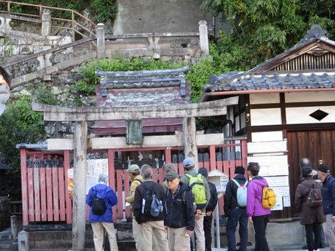 男山中腹に位置する石清水社は、霊泉「石清水」を核とした摂社で、名の由来となった本宮御鎮座以前の起源に遡る。御鎮座以前は傍に石清水寺が建立されており、本宮創建と同時に石清水寺は「護国寺」となったとされている。その石清水社までは段数が多い階段があるので、元気のある人が向かうはずだったが、意外と多くのメンバーが向かった。