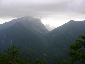展望のない樹林を一歩一歩とひたすら登った。針葉樹からダケカンバなどに変わると展望が開けてきた。