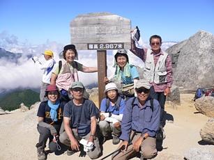 小屋に下る登山道があるが、そのまま登り詰め、小さな窪地で、昼食を取った。「ぜんざい」は、一人当たり僅かであったが、温かい一口は、おいしかった。昼食後、急坂を登り切ると頂上に着いた。そこは、以外にも狭く登山者で混雑していた。