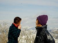 私の娘ぐらいのおしゃべりな二人は、写真を撮る私を置いて、「頂上で待っている」と言って樹氷を探しに登って行った。