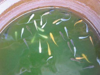 2022年07月11日 メダカの子 ヒ ヒロミュージック • その他 詳細 観光 祭り 自然 現代 お気に入りに追加 この春生まれたメダカの子、孵化した数は不明ですが、その後成長を続け現在約50匹ほどが泳いでます。血統的には、我が家では赤(姫メダカ)が主流です。最近黒が増えてきました。白が少なくなってきましたが、透明の子もいます。2~3年越しの親は、元気に暴れまわっています。朝顔は未だ花芽が出ません。 この記事を報告する 不適切な内容や規約違反を発見した場合はご報告ください