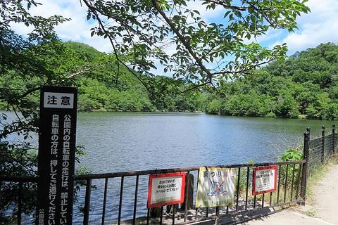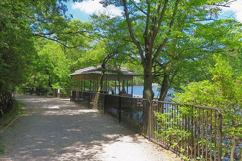涼しそうな木陰が見えてきました。さらに進むと、宝ヶ池が見えてきました。