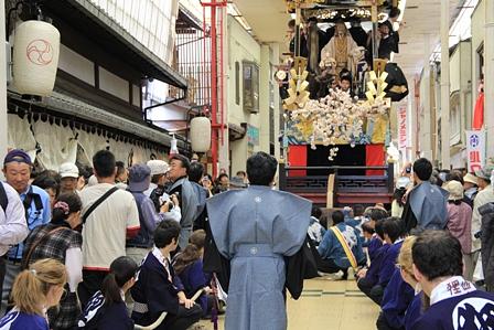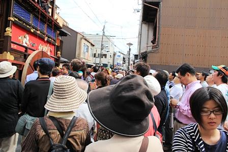 曳山の高さが結構高い。家の二階からのながめが絶好の桟敷になっていることがわかった。涼しい顔をした人の家へ向かって、何やら投げ入れていた。不思議な行為であった。