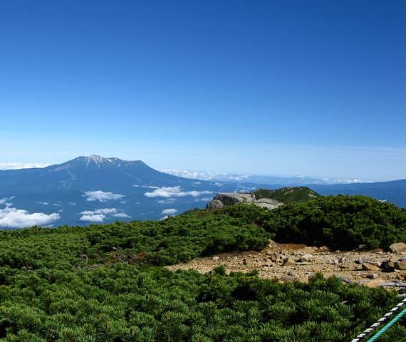 入山計画書を書き、いよいよ登山開駒ガ岳神社で安全を祈願して出発していった。山腹を巻き込むように付けられた山道には、人影が上に上にと繋がり、極楽平に向かっていた。