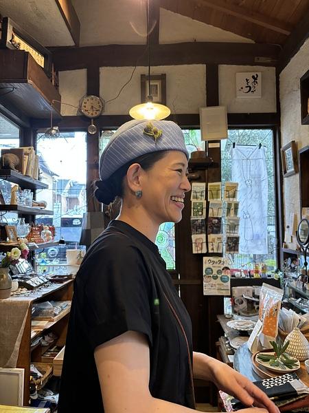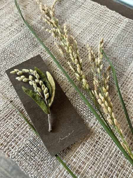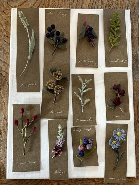 今日はスリエさんが秋物のブローチを納品しに来てくださいました。
