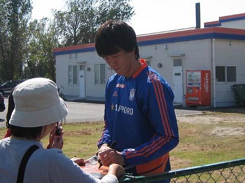 そして、人だかりの方へ近づいていくと、矢野貴章選手や他の選手がサポーターにサインをしたり一緒に写真を撮ったりしていました。
