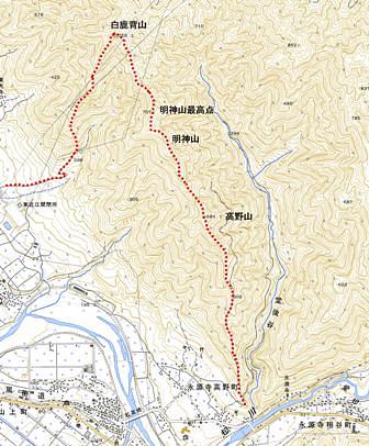 コースは、東近江市永源寺高野町から入山し、高野山(684m)明神山(707m)白鹿背山(755m)へと縦走するものだ。