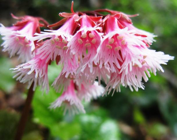 それはそれとして、花の基部は10ケ以上の筒状の花が鈴なりになってみごとな色合いであった。赤味かかったものからピンク色そして白ぽいものまであった。それにしても、カタクリは1本も見られなかった。既に時期が遅いようだ。