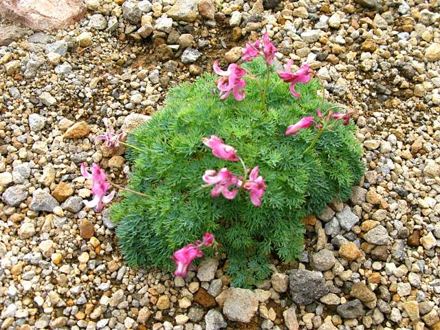 花が終わり果実を着ける頃には、風も益々強くなります。花茎は折れて、砂礫地を転がり、種子が辺りにばら撒かれます。種から花が咲くまでに7~8年かかります。 写真の立派に育ったコマクサは、なんと20年程度…。