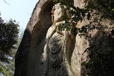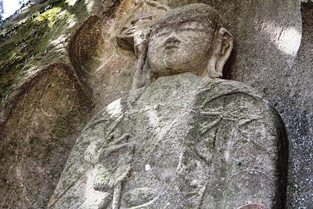 多くの磨崖仏を見て歩いた。皆さん素通りされていたが、観音7番の苔にまみれた物憂げな表情をした「如意輪観音」が妙に気になった。京奈良の中宮寺であり、京都の広隆寺の半跏像と重ね合わせていたかもしれない。