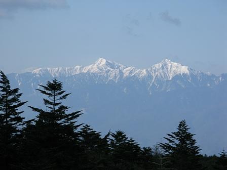 秀麗な丸みを持った山容の蓼科山が、直ぐそこに見えた。その背後には北アルプスの山並みが望めた。