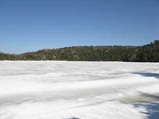 国道299号線沿いにある麦草峠の草原を辿り、深々とした森林帯を真っ直ぐ進んだ。明日通過する丸山へ行く道標を見遣りながら、左へ進路を取りしばらく進むと白駒池に到着した。この時期の白駒池は、一面氷に覆われた別世界であった。周囲にびっしりと針葉樹が生い茂り、原生林の圧倒的な存在と、ヒトも寄せ付けない静寂が漂っていた。