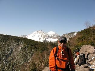 十分に光景を堪能した後、再び来た道を下山していった。大きな「つるはし」を持ち、且つ「ぼっか」している山人に出遭った。昔は荷物を頭の上まで背負った山男はよく見かけたものだが、最近、ヘリで輸送するため、めっきり見かけなくなった。懐かしい姿だ。凍った山道にステップを切りながら話しかけて「あれが浅間山で谷川岳だ」と親切に教えてくれた。