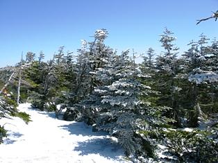 この辺りはまだまだ冬化粧で樹木には、樹氷の華が咲き厳しさを見せつけていた。