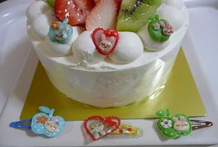 『1歳のお誕生日ケーキです♪ ウタのパッチン留めをマジパンで作ってもらいました♪』