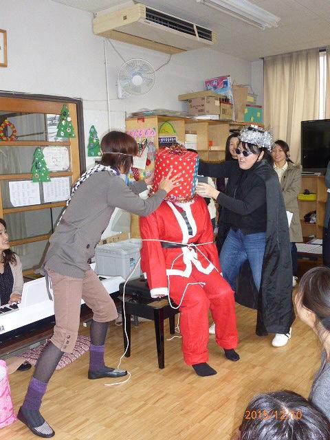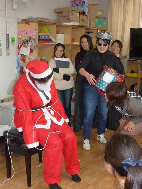 いつもはすぐに練習が始まるのに、初めに先生が手遊びや絵本を読んでくれて、おわったと思ったら悪者につかまったサンタさんが入ってきて