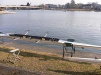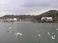 瀬田川の様子を見たいので、川沿いの裏道を通ってみました。立命館・京大のボート部がひとつ道路を挟んだ瀬田川の際に建てられ、人気もしました。祝日でもあるので、昨日から合宿しているのであろう。既に、瀬田川にはボート、カヌー、カッター等の乗艇訓練をしている者、うろうろしながら準備をしている若者など、朝早くからこの当たり一帯は活気付いていました。更に進むと川面で遊んでいたユリカモメも出迎えてくれました。