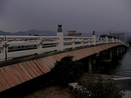 瀬田の唐橋は、歌川広重の描いた近江八景の一景(「瀬田の夕照」)として有名な橋です。橋の向こうの夕映えの中に、近江富士浮かび上がる構図になっています。出来るだけ夕方を狙ってここを通るようにと思ったのですが、橋を通過時、生憎、時雨に遭ってしまし、慌てて通り過ぎてしまいました。「瀬田の時雨」になってしまった。