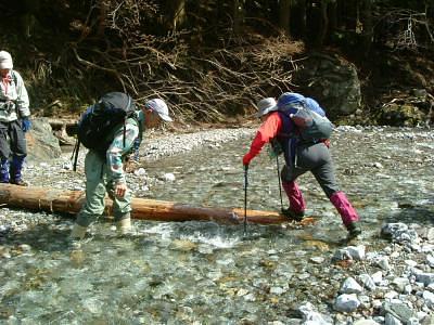 このため、前に進むには、右岸・左岸と徒渉しなければならなかった。計画では、数回程度の渡渉と聞いていたが、増水気味で何十回にもなった。