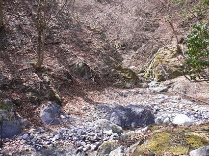 まず、西尾根の取り付きを目指した。以前、T氏は、三筋滝から真の谷を目指した時、一度、西尾根を通過し、様子が判っているので、気楽に茶屋川を遡行していった。川床は、案外幅広く川筋が蛇行していた。