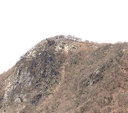 尾根の傾斜がゆるくなったところに ピーク893mの道標があった。このあたりまで登ってくると、自然林帯となっていた。 藤原岳から張り出している西尾根に数頭の動く影が見えた。群れをなしてカモシカが雑木林の間を過ぎ去ったいった。 一瞬の出来事で写真を撮ったが映っていなかった。また、天狗岳は、西尾根から見ると山稜がふくれており、特徴がある。 この辺は、鈴鹿山系の最も深いところで自然が色濃く残され、野生の動物も生息している秘境である。メンバー全員はこの自然に感謝し、感動した 。