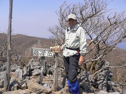 稜線近くで藪こぎをしていると縦走路に出た。登りきったところが藤原岳展望丘山頂だった。頂上付近は、東側コースから登ってきた人たちで溢れていた。突然藪から現れたので、どこから登ってきたのと尋ねられ、「あっちから」と答えるとけげんな顔をしていた。