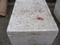 発泡スチロール製の蓋付きトロ箱〔代表寸法縦50㎝X横40㎝X高さ20㎝〕をスーパーから譲ってもらったものです。用途に合わせて大小を7ケ確保しています。蓋には、穴を開けて空気の流通ができるようにしています。