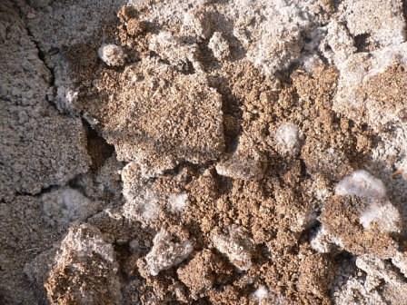 油カスを施肥した直後の色は、茶褐色をしていますが、段々干からびてきて黒く変色してきます。目には見えませんが、土壌には、微生物が一杯います。1gに1000万の微生物が生息しているといわれています。この微生物が油カスを食べて分解を始めるのです。油カスが窒素・燐酸・カリに分解しますと、始めて植物が肥料を吸収出来るのです。尚、最近では、アミノ酸などの低脂肪酸でも吸収できるとの報告もありますが…。