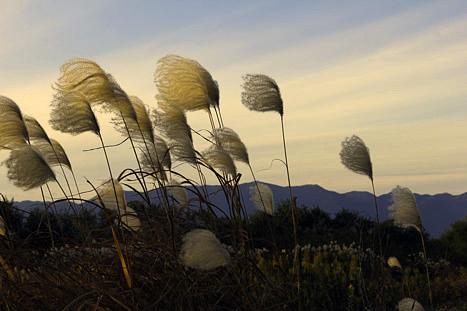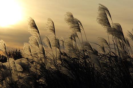 陽が沈む直前の風聞き草とも呼ばれるオギ