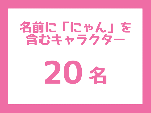 20名いました。キャラクターの総数が647名なので全名の3%です。条件を狭めた割には多いです。全員猫のキャラクターです。