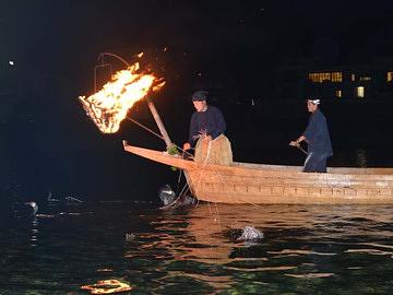 そして、5人が揃って夕食を済ませたあと、鵜飼いの遊覧船に乗りました。