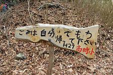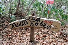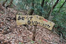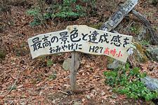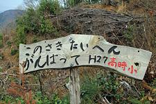 頂上まで、高時小学校の生徒が書いた励ましの言葉板に導かれた。『あせらず 自分のペースで!!』から始まり、最後が『てっぺんのけしき見たらえがをになるよ』で終わっていた。