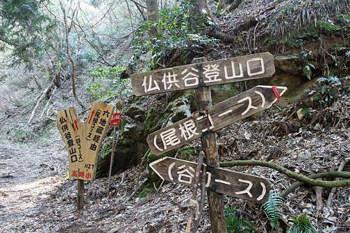 山コースと谷コースの分岐点、稜線沿いの登山路