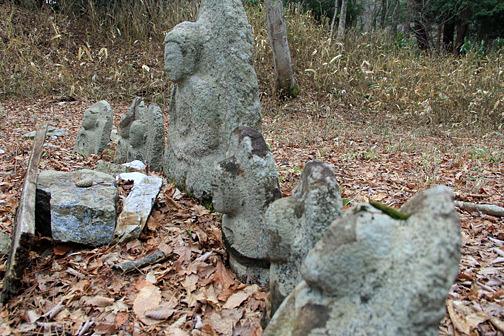 六地蔵と言うところで一息。中央の大きな地蔵さんに左右3体の石仏が横一列に並んでいた。7体あるのに六地蔵と呼ばれているようだ。