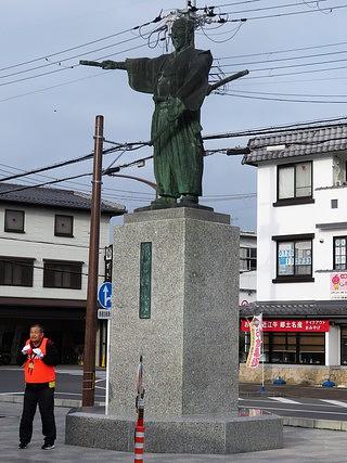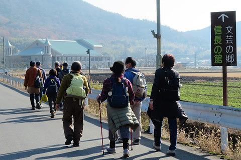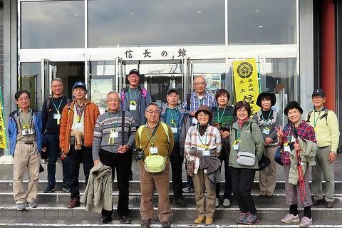 集合場所に予定通り集まり、出発前の注意事項等を信長像を背負って話されるのを聞きました。
