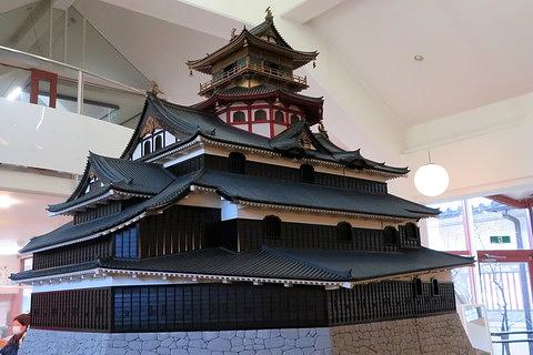 安土駅ではほんの少し15時20分の下り電車に間に合わず、約30分待たなければならなくなりました。 この時間を利用して安土城資料館へ。 入館料200円で、ビデオ、安土城の中まで見える模型、洛中洛外図、安土城、安土城下、長崎の陶板画にした屏風等を見れ、十二分に満足しました。 写真は二つに割れて中が見えるようになる城の模型