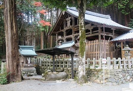 山麓に厳粛な気配が漂う格式がある神社に行きついた。神木なのであろう6~7mの幹の大杉を始め、モミなどの森林に囲まれ、神気に満ちていた。