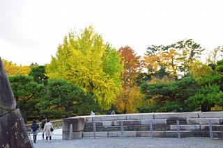二条城にはもみじの木があんまりないので紅葉を求めるとちょっと物足りないのかもしれませんが桜の葉が紅葉していく色の移り変わりや大きな銀杏の木の葉が黄色く光る迫力が楽しめます