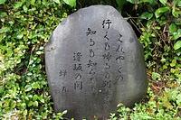 この地はかつて京都から東国への出口にあたる交通の要所。ここに蝉丸が庵室をつくり、逢坂の関を行き交う人を見て、出会いと別れの地であったことを詠ったものである。