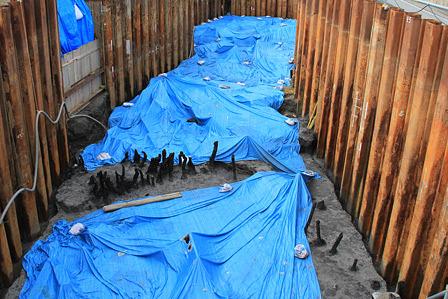琵琶湖一周している時、塩津浜近くまで歩を進めていくと、地表から4メートルほどの深さに矢板を打ち込んだ穴に出くわした。この街に興味を持ったのは、これが最初であった。