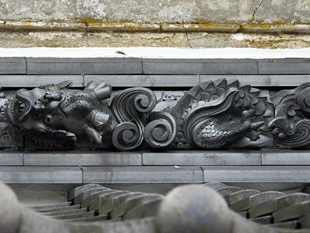庇瓦に見事な龍の飾りがある