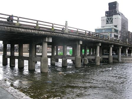 鴨川に掛かっている京都市内にある三条通の橋にやってきた。三条大橋の橋げたを見るためだ。