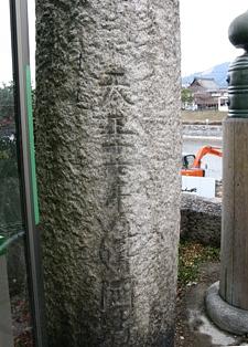 彫られている文字は風雪に曝されたのか判読できない。が、横に「三条小橋商店街振興組合」による標識には「天正十七年 津国御影」と彫られていると解説してあった。天正十七年とは1590年、津国御影とは神戸市東灘区でここから切り出されたか御影石、つまり花崗岩である。