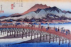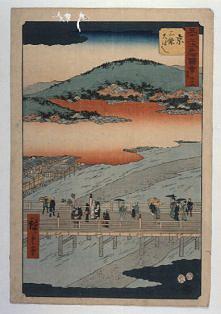 三条大橋にやってきて分かったことは、豊臣秀吉の命により石柱の橋が建てられた事であった。更に、友達が言っていた広重の浮世絵風景画を調べてみた。