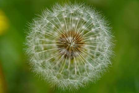 花が咲き終わった後に現れるこの白くふわふわした球体は、完璧な「球」の形をしています。中心から放射状に綿毛が伸び、どの方向にも均等に広がっている様子は、カメラで捉えることができる美しい光景です。それぞれの綿毛の先には、次の世代のタンポポとなる種がついています。