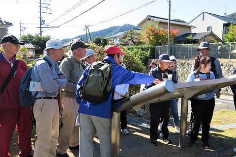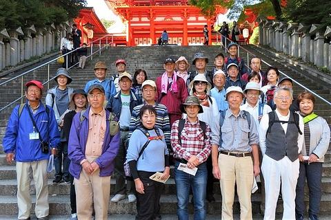 湖西線の北部で動物と列車の衝突による最大50分も遅れが発生し、大阪からの参加の方から遅れるとの連絡があり、対応を考えていたが、時間通り46名がJR大津京駅に集合。 二班に分かれて巡ることになった。