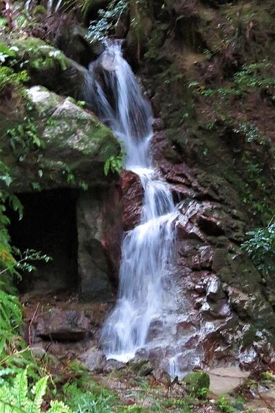 国宝舎利容器が塔の心礎から発掘され、塔、小金堂があった崇福寺中尾根の遺跡、弥勒堂跡等の建物があった北尾根へ。中尾根、北尾根ではイノシシが地面を掘った跡があった。 北尾根を下りたところにある 金仙滝。